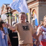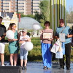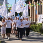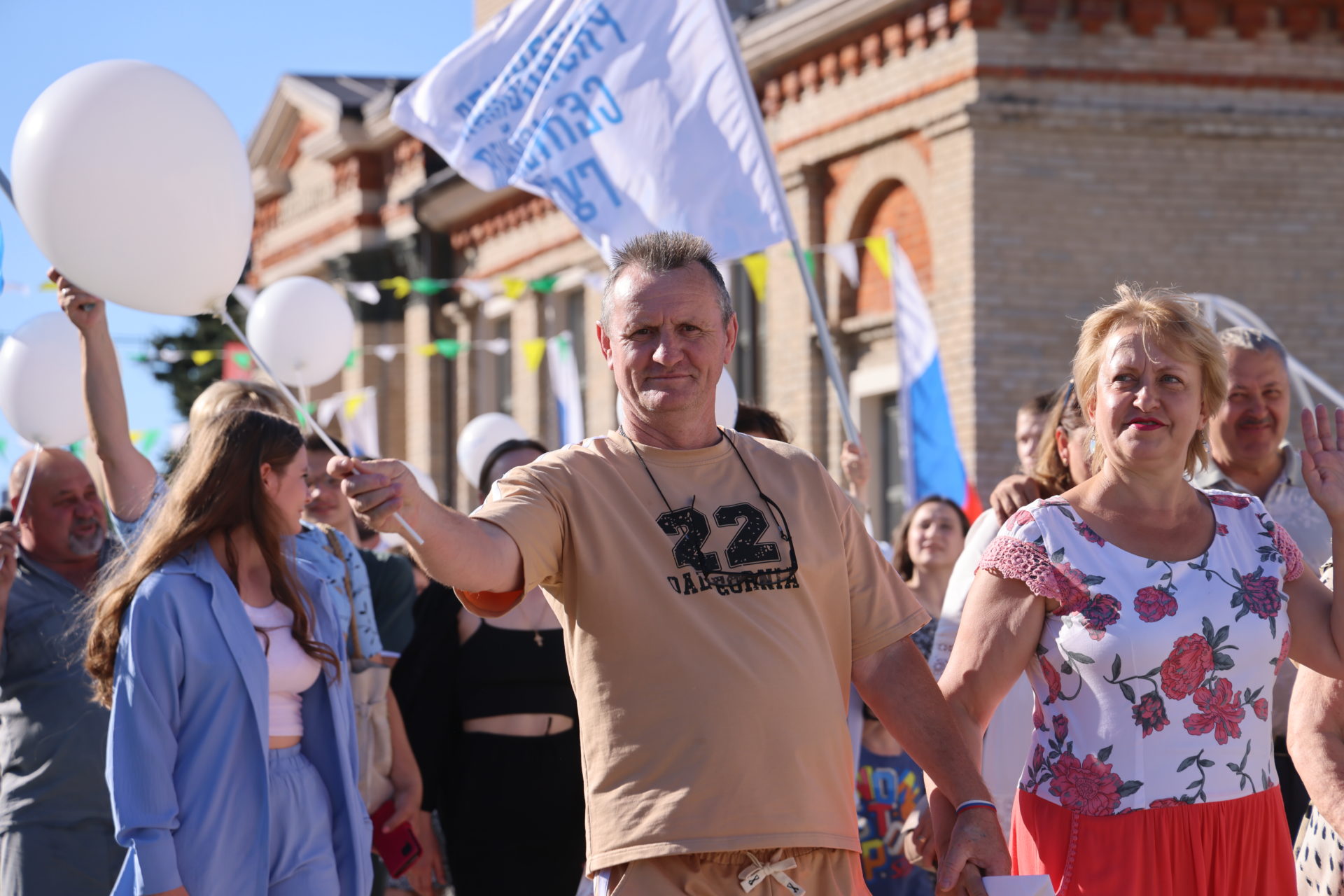 Десятки семей с шарами, цветами и флагами колонной прошлись вдоль территории Рязанской ВДНХ.