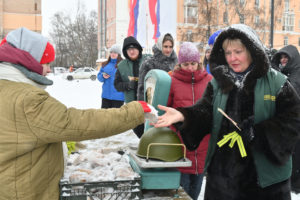 Волонтеры Победы раздавали жителям по 125 граммов хлеба — символ стойкости ленинградцев и минимальную норму выдачи в самый трудный период зимы 1941–1942 годов. Волонтеры рассказали гражданам о вкладе жителей Рязанской области в дело защиты и освобождения Ленинграда.