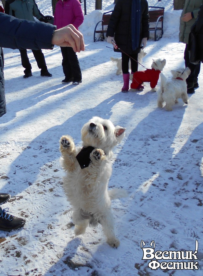 В Рязани в Нижнем городском парке в последнюю субботу зимы под ярким солнцем в 6-й раз прошла встреча владельцев собак породы вест хайленд уайт терьер и их питомцев «Вестик-Фестик». Об этом РИА «7 новостей» сообщили организаторы.
