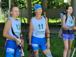 Женщины бегут 1 километр с тремя рубежами – «стойка», «колено», «стойка». Мужчины бегут 1200 метров с тем же набором рубежей. Необходимо сбить пять мишеней. За каждый промах участник бежит штрафной круг 70 метров.