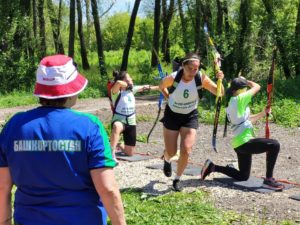 Спортсмены соревнуются в дисциплине «ачери-кросс». Соревнования напоминают биатлон, только вместо винтовки у участников лук и стрелы.