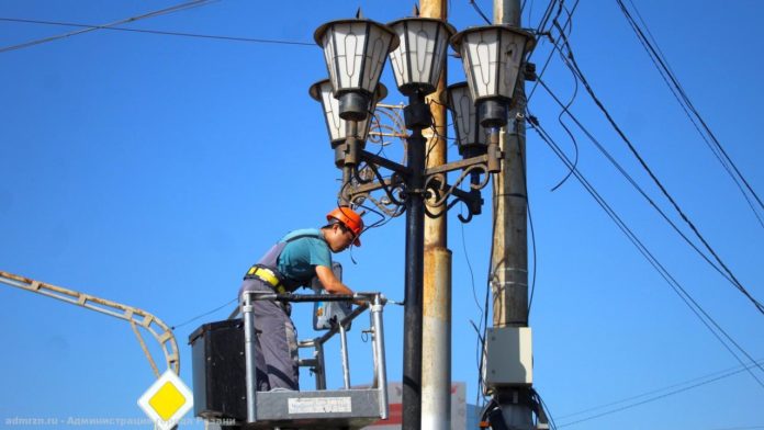 Бригады электриков МБУ «ДБГ» на этой неделе проводили монтаж и перетяжку проводов на улицах Новикова-Прибоя, Яхонтова, Черновицкая, Ленинского Комсомола, Касимовское шоссе, Интернациональная, Бирюзова, Островского, Льва Толстого, Окский проезд, Индустриальный переулок, Театральной площади, Севастопольской аллее. По информации городской администрации, всего было отремонтировано более 1100 метров проводов уличного освещения.