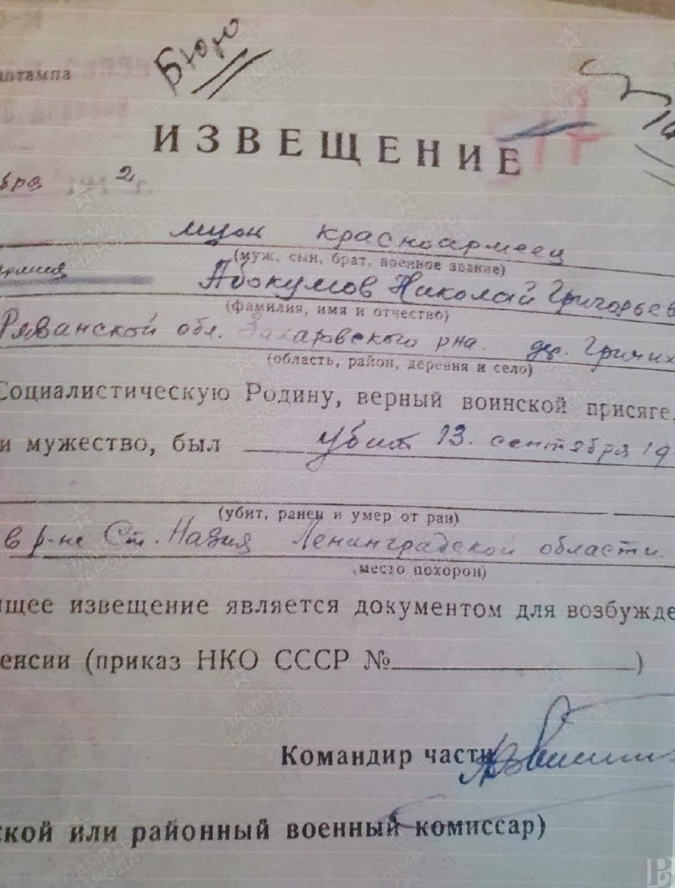 Главный документ – записка из медальона, по которой удалось найти родственников. На клочке бумаги написаны фамилия, имя, отчество и место жительства – Захаровский район Рязанской области. Документ внучатому племяннику Дмитрию Тимакову вручил начальник отдела военного комиссариата Рязанской области Святослав Шульжик.