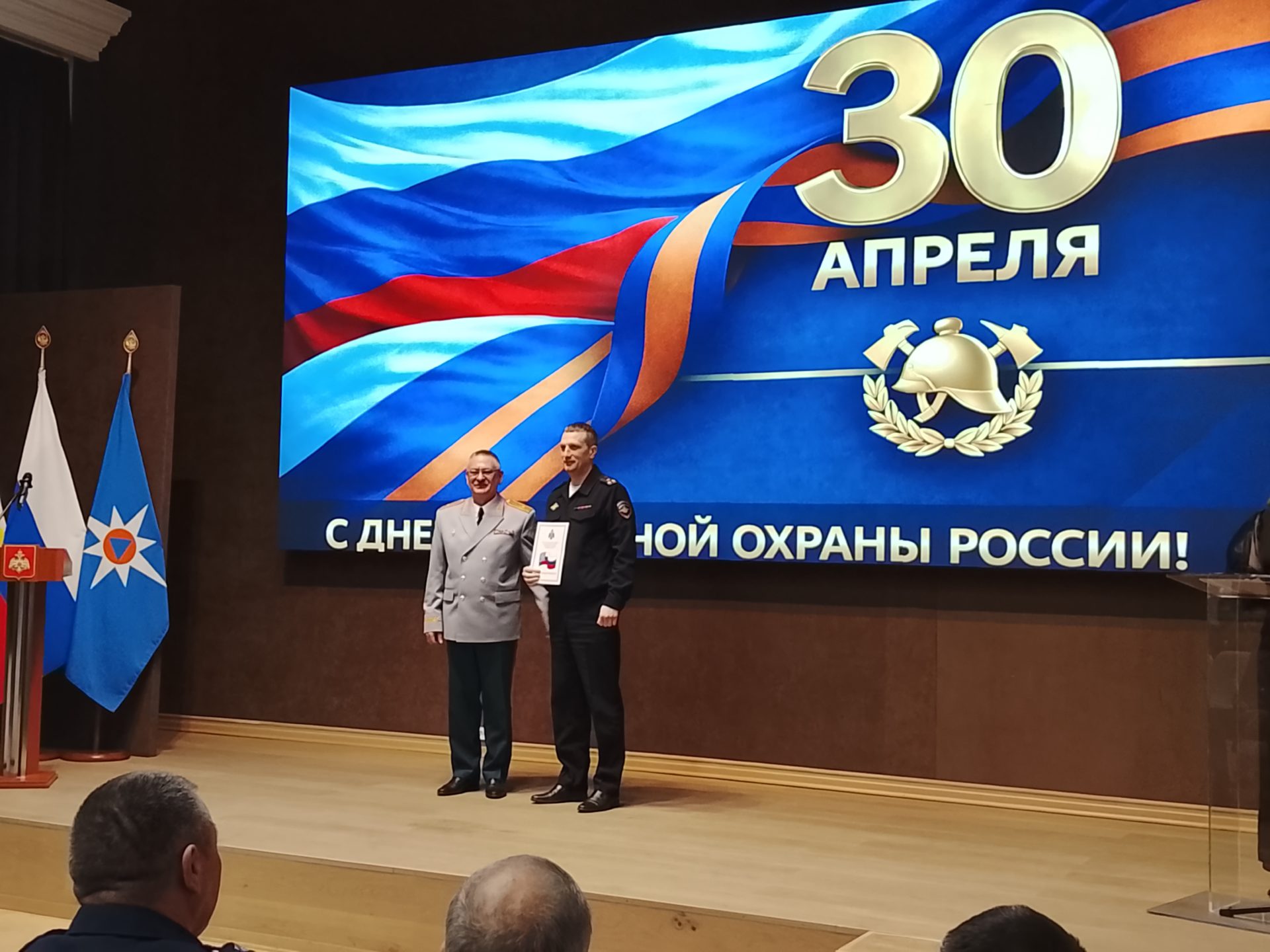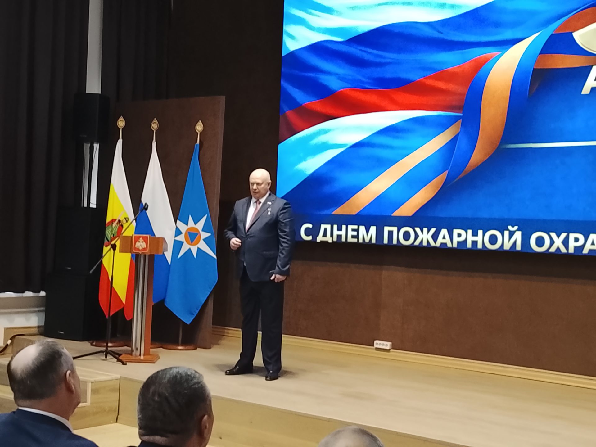 Торжественное собрание, приуроченное к Дню пожарной охраны России, который ежегодно отмечается 30 апреля, прошло в областной библиотеке им. Горького. От имени губернатора Павла Малкова с профессиональным праздником всех поздравил руководитель Главного управления по взаимодействию с федеральными территориальными органами Рязанской области Александр Жеребин. Он поблагодарил пожарных за добросовестный труд и высокий профессионализм, вручив сотрудникам ГУ МЧС по Рязанской области памятные знаки губернатора «Михаил Скобелев» и «За усердие».