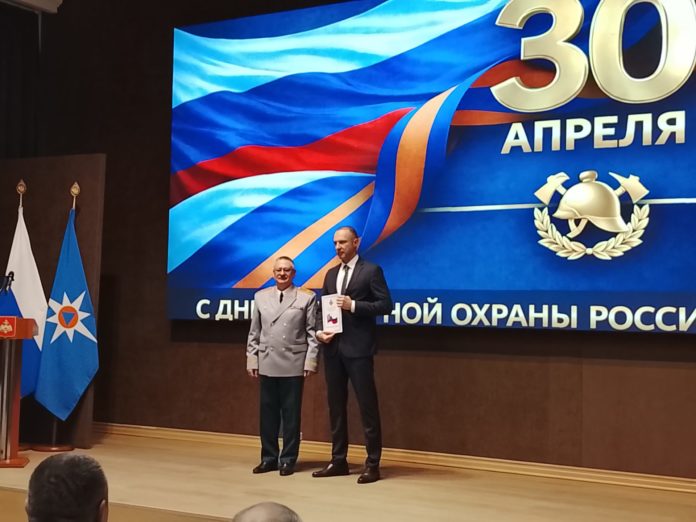 Бойцы пожарной охраны получили погоны очередных званий и медали МЧС России. Государственной награды Российской Федерации – медали «За отвагу на пожаре» – удостоен подполковник внутренней службы Андрей Игнатов.