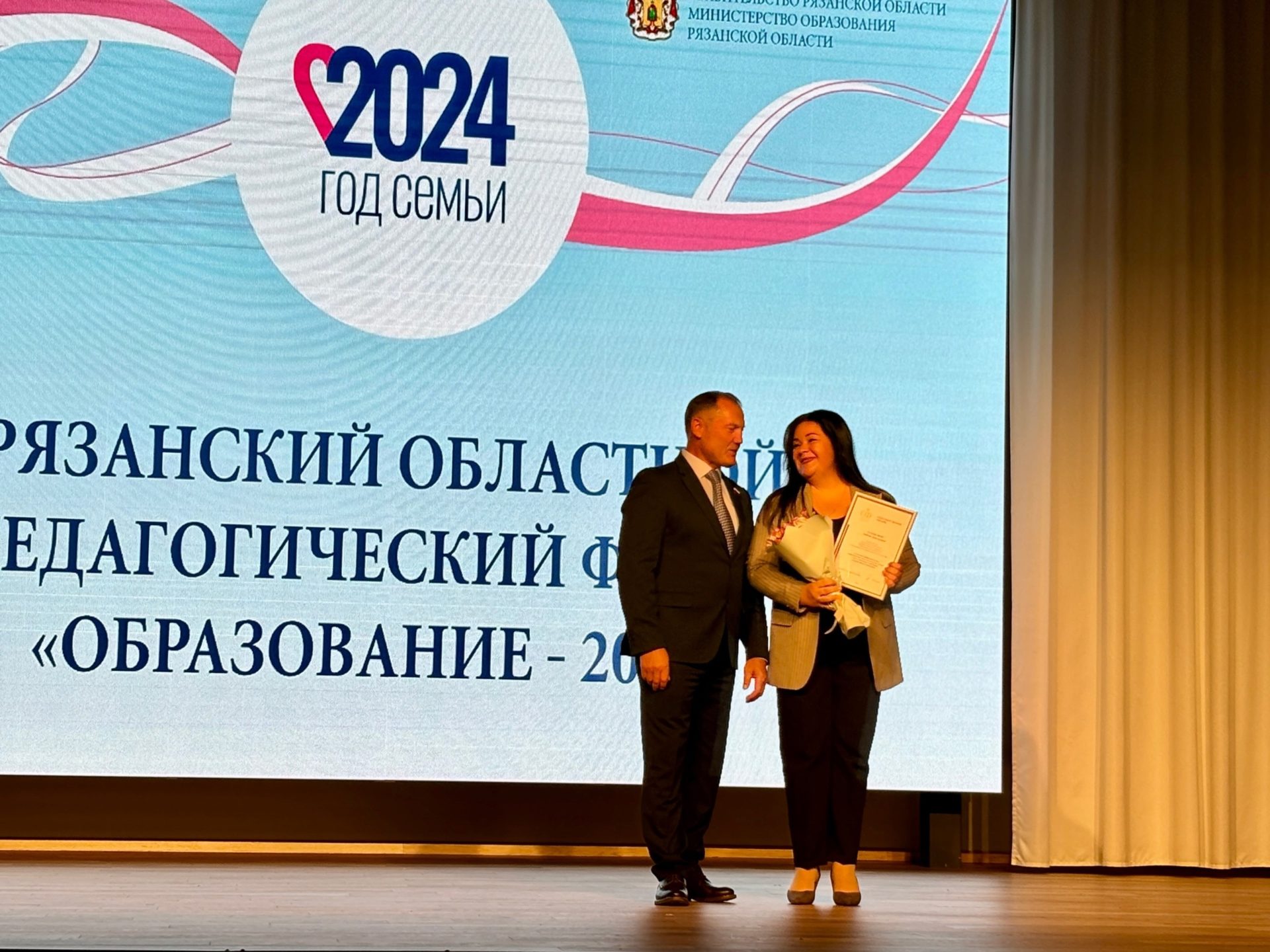 Поприветствовала и наградила работников системы образования заместитель председателя правительства Рязанской области Наталья Суворова: «Сегодня в зале те, кто дают фундамент нашему будущему. По поручению губернатора Рязанской области Павла Малкова разрешите выразить вам благодарность! В этом году мы дали старт строительству шести новых школ и детских садов. В рамках программы «Развитие сельских территорий» в селе Успенском открываются новые объекты и благодаря этому увеличивается рождаемость в области. Мы будем развивать дополнительное образование и откроем новый методический центр «Гелиос». С сентября нужно продолжать профориентационную работу».