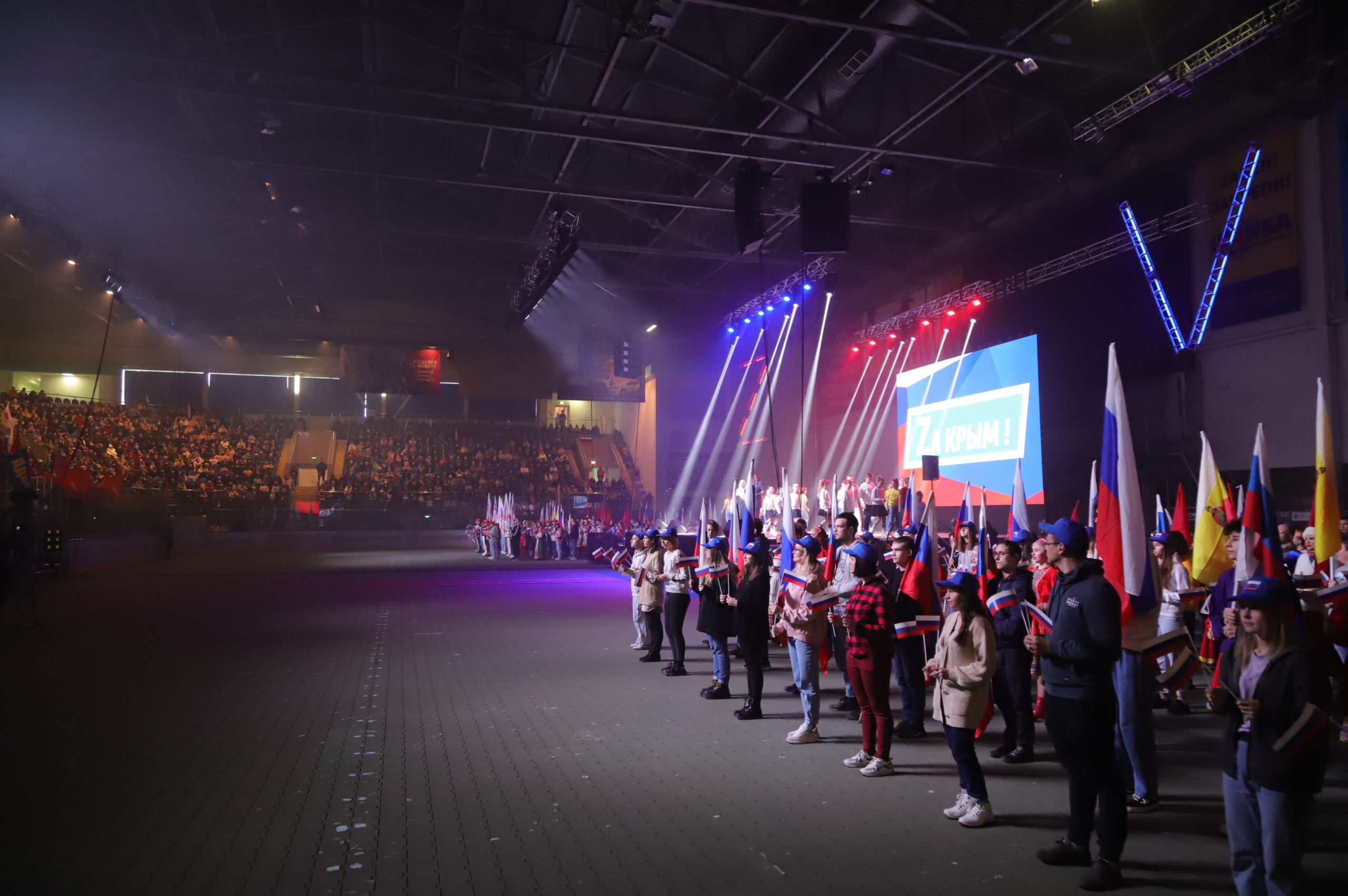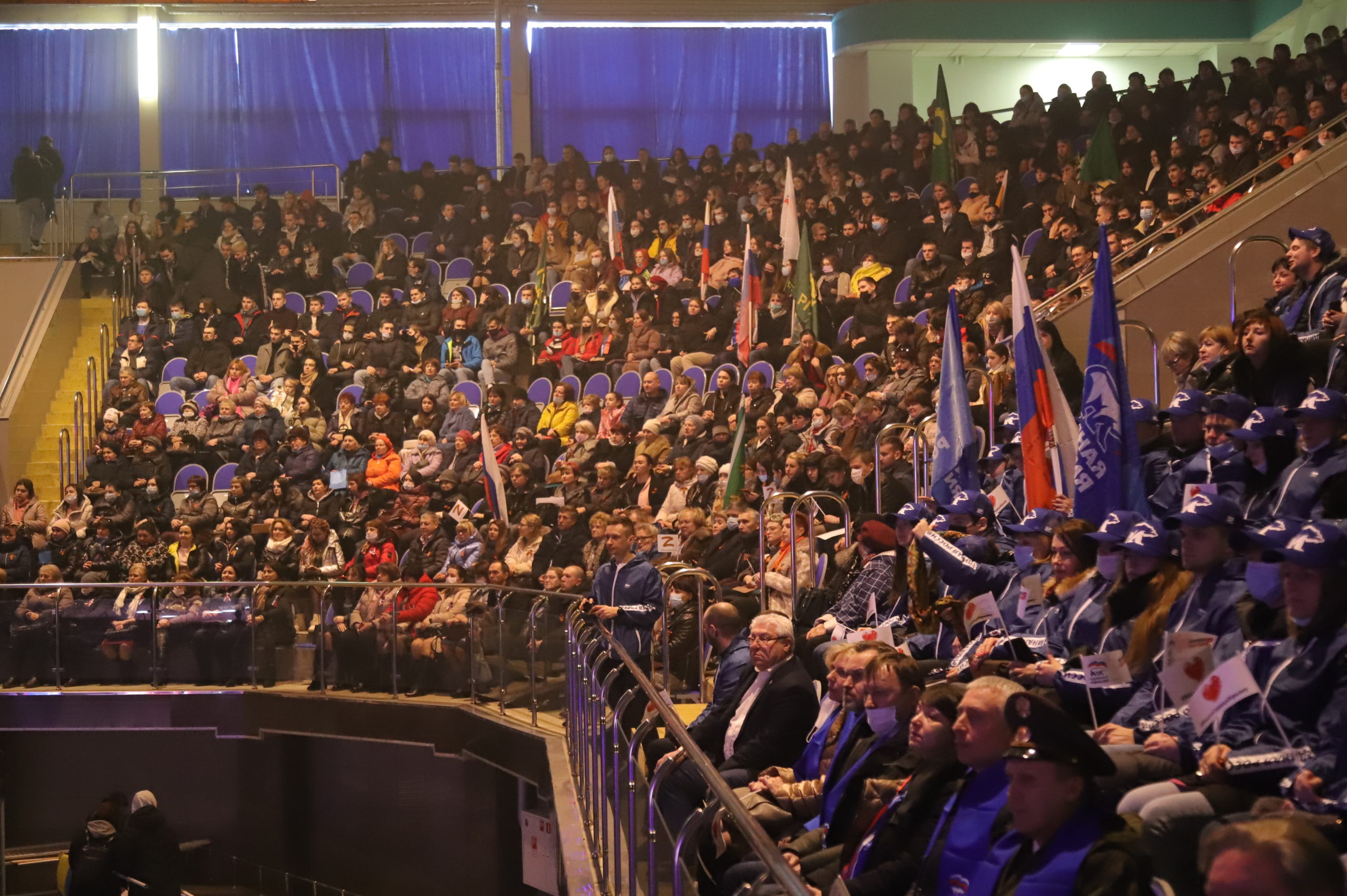 Ледовый дворец спорта “Олимпийский” был заполнен людьми до отказа, и в этом чувствовалось единение рязанцев, пришедших поддержать Донбасс, позицию Президента России Владимира Путина по Украине и отпраздновать 8-ю годовщину воссоединения Республики Крым и Севастополя с Россией.