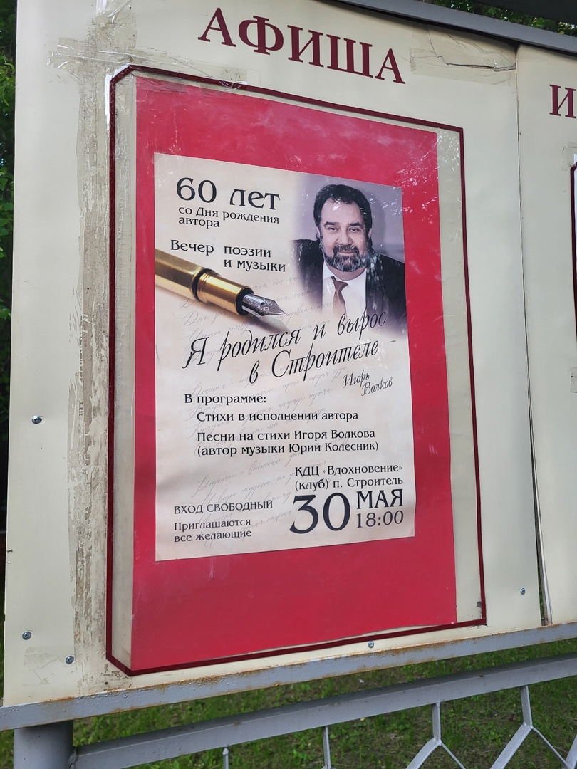 За почти 70-летнюю историю посёлка Строитель такого здесь точно никогда не было. В культурно-досуговом центре «Вдохновение» местный житель Игорь Волков увлеченно читал стихи для друзей из своего первого поэтического сборника «Перекрёсток, остановка». Народу собралось столько, что люди даже в проходах стояли.