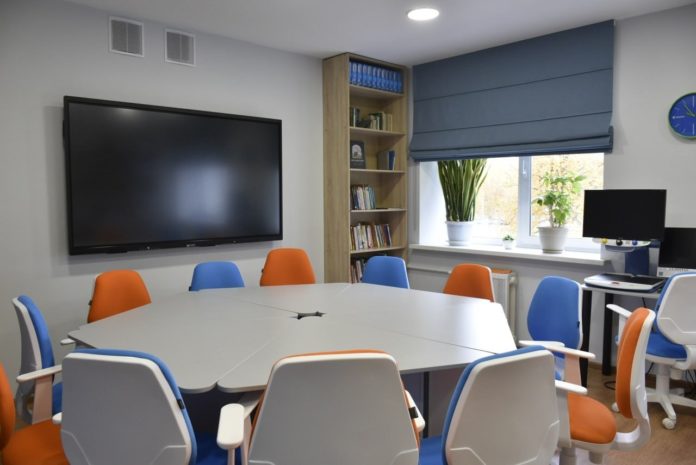 В школе работают медицинские и офтальмологические кабинеты с современным оборудованием для коррекции и реабилитации, социально-психологический блок с зоной релаксации.
