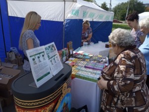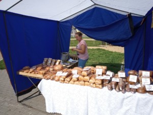 На улице Советской армии раскинулся палаточный базар. Здесь только Рязанские продукты, причем помеченные соответствующим знаком. Он присваивается не только за высокое качество, но и за участие производителей в социально ориентированных акциях, а также в активном продвижении товаров за пределами области.