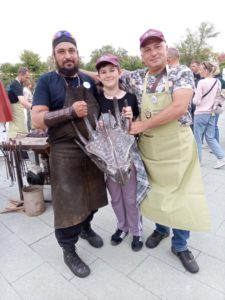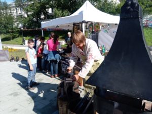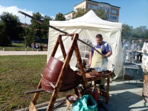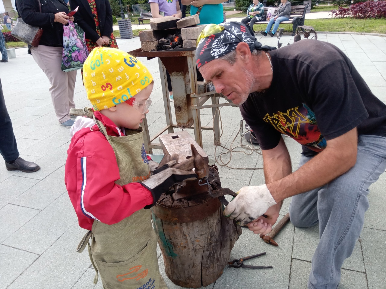 Мастер-классы проходят на нескольких фестивальных площадках. Попробовать выковать небольшой сувенир может каждый, кто пришел на фестиваль, под руководством опытного мастера. Многие участники приехали на фестиваль не в первый раз, они хорошо знакомы, и это создает на фестивале особую, доброжелательную и творческую атмосферу. Вовсю работают и фотозоны, и сувенирные лавки. Отдельным подарком и организаторам, и участникам, и гостям впервые часы стала погода: дождь прекратился, светило солнце.