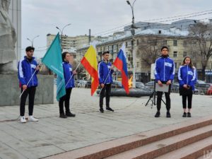 На торжественной отправке прозвучало напутственное слово от заместителя министра образования и молодежной политики Рязанской области Сергея Хлыстова. Сергей Николаевич вручил студентам путевки и символики “Снежного десанта РСО”.