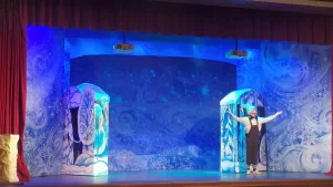 – Проделана очень большая работа. Задействовано около 20 человек. В этом году в спектакле будут играть роли даже монтировщики, – рассказала хореограф-постановщик Дарья Захарова. – Я сама участвую в одном из составов, играю роль Огонечка. Огромное количество постижеров и декораторов, которые все это создавали. Мы постарались раскрыть каждого персонажа, чтобы детям было интересно наблюдать за тем, что происходит на сцене. Спектакль придумывался с радостью и на радость. И артисты, когда это все создавали, все веселились и пришли дарить эту радость детям.