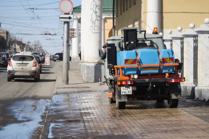 С проезжей части на улице Семинарской и Парковом проспекте удаляли грунтовые наносы, дороги мыли на улицах Зубковой, Новоселов, проезд Яблочкова, Куйбышевское и Ряжской шоссе, Циолковского, Есенина, Спортивная, Дзержинского, Соборная и других.