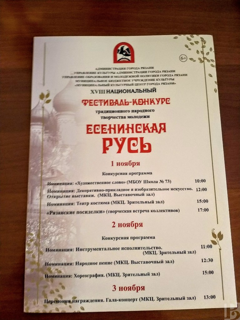 Конкурс по традиции откроется творческой программой «Рязанские посиделки», где коллективы и руководители познакомятся друг с другом. Декоративно-прикладное искусство будет широко представлено не только конкурсными работами, но и выставками творческих детских студий «Колибри» и «Кляксики».