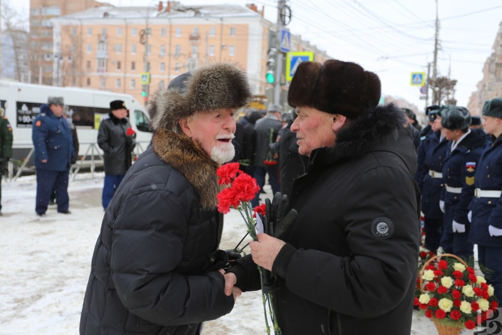 По многолетней традиции церемония проходила на площадях Победы и Маргелова. Первыми цветы возложили губернатор Николай Любимов, ветеран Великой Отечественной войны Владимир Инюцын и заместитель начальника Рязанского гарнизона, гвардии полковник Игорь Бортан.