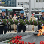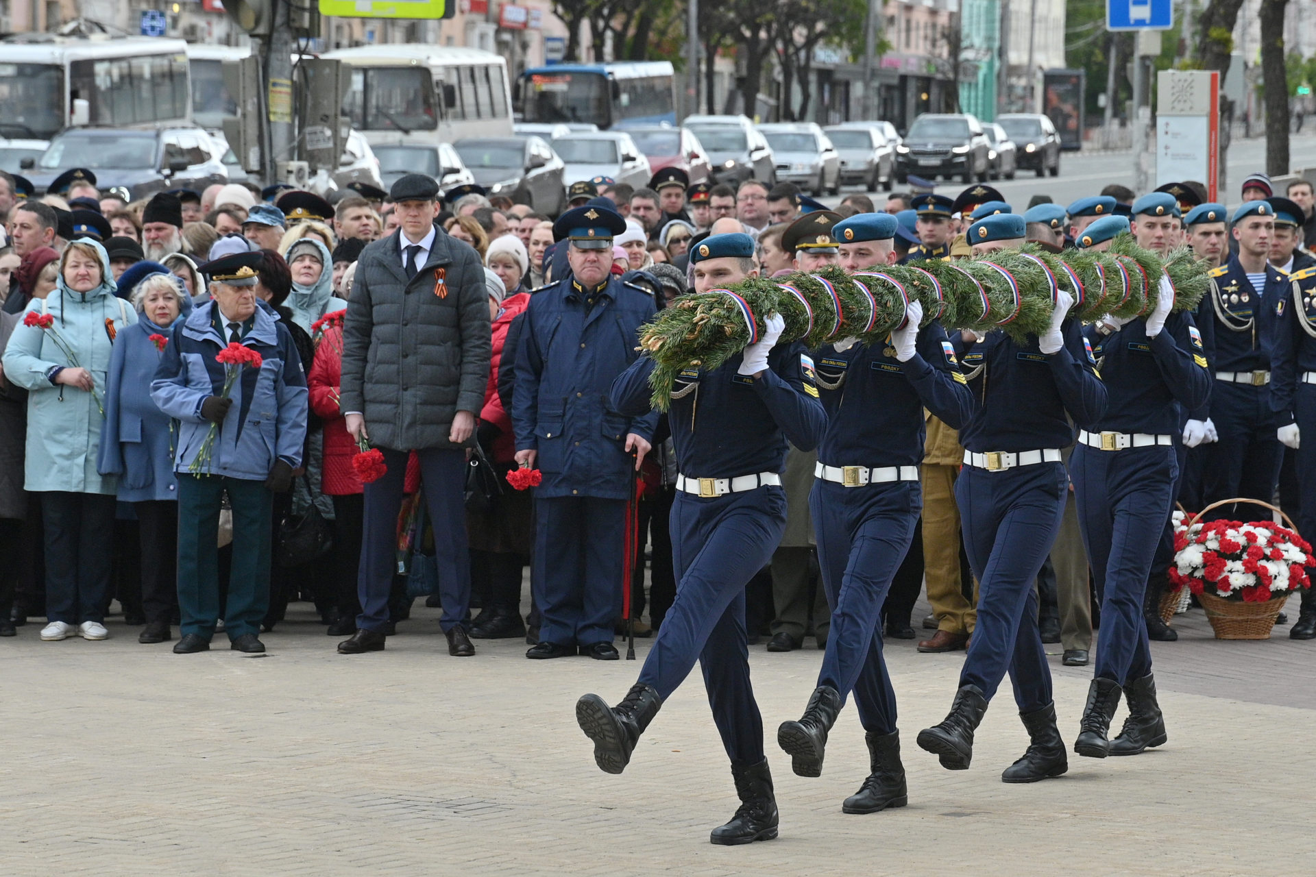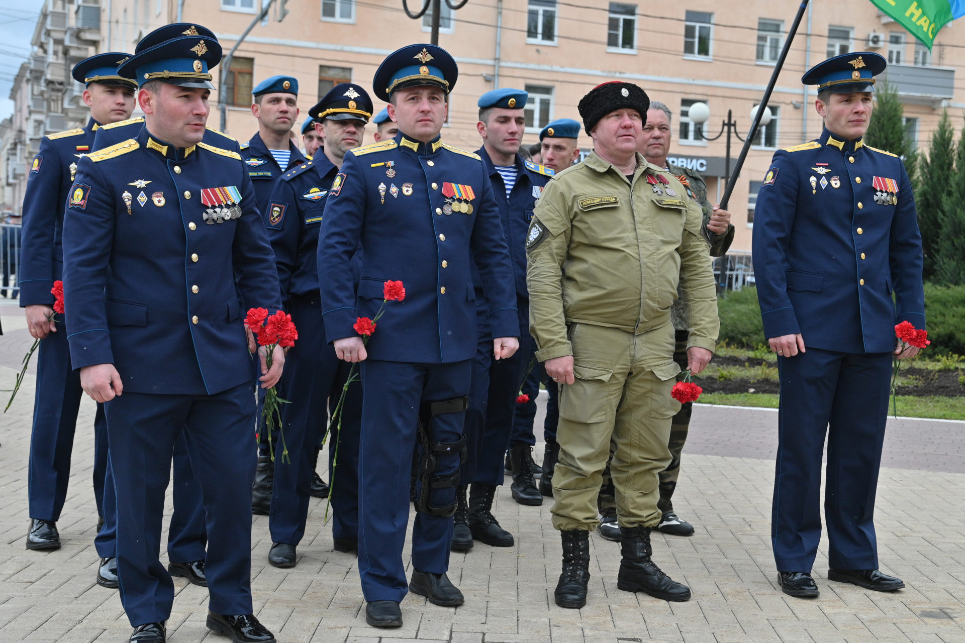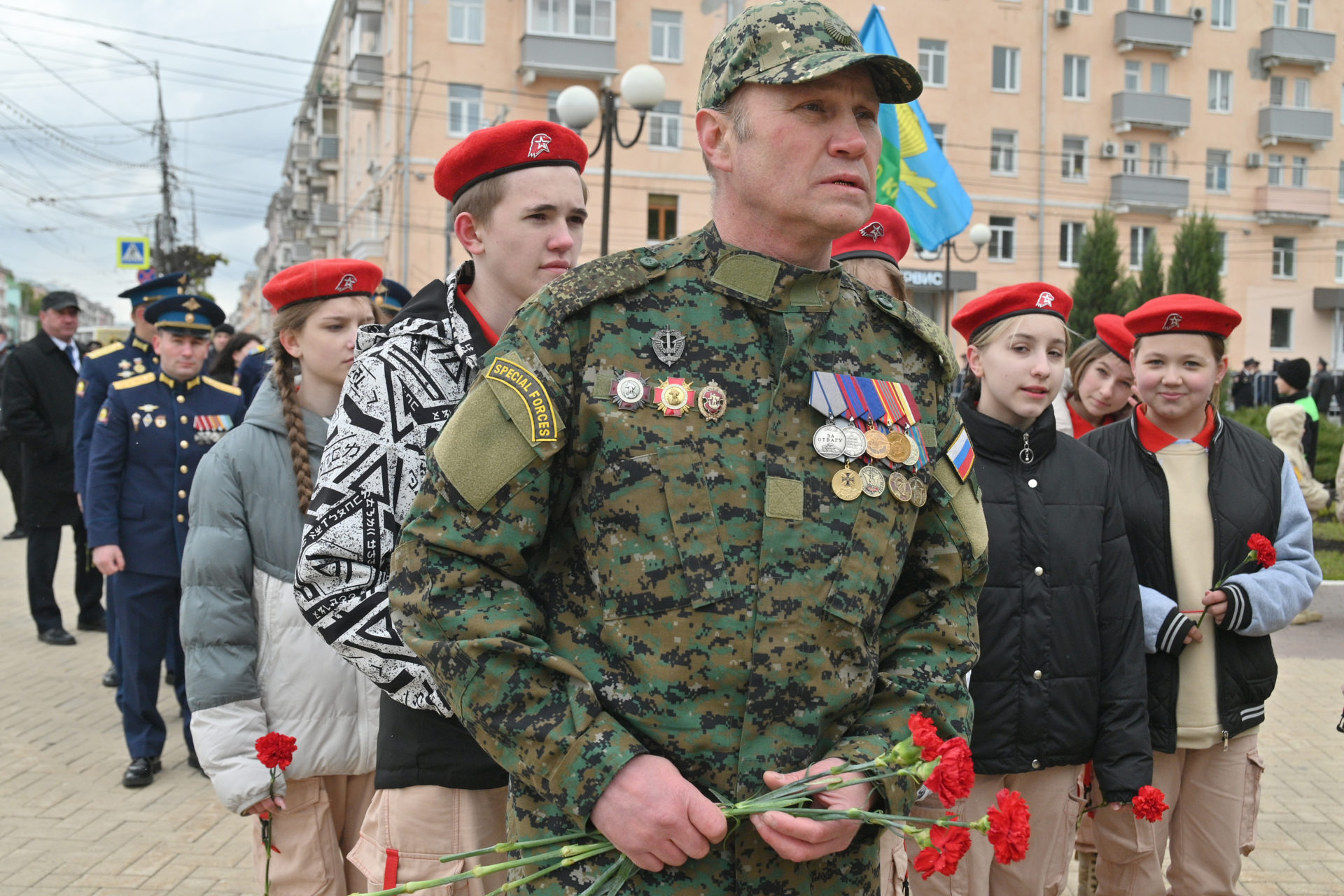Первыми цветы к подножию монумента возложили губернатор Павел Малков, ветеран Великой Отечественной войны Леонид Иванович Окрут и и.о.начальника РГВВДКУ имени генерала армии В.Ф.Маргелова, гвардии полковник ВДВ Олег Пономарев.