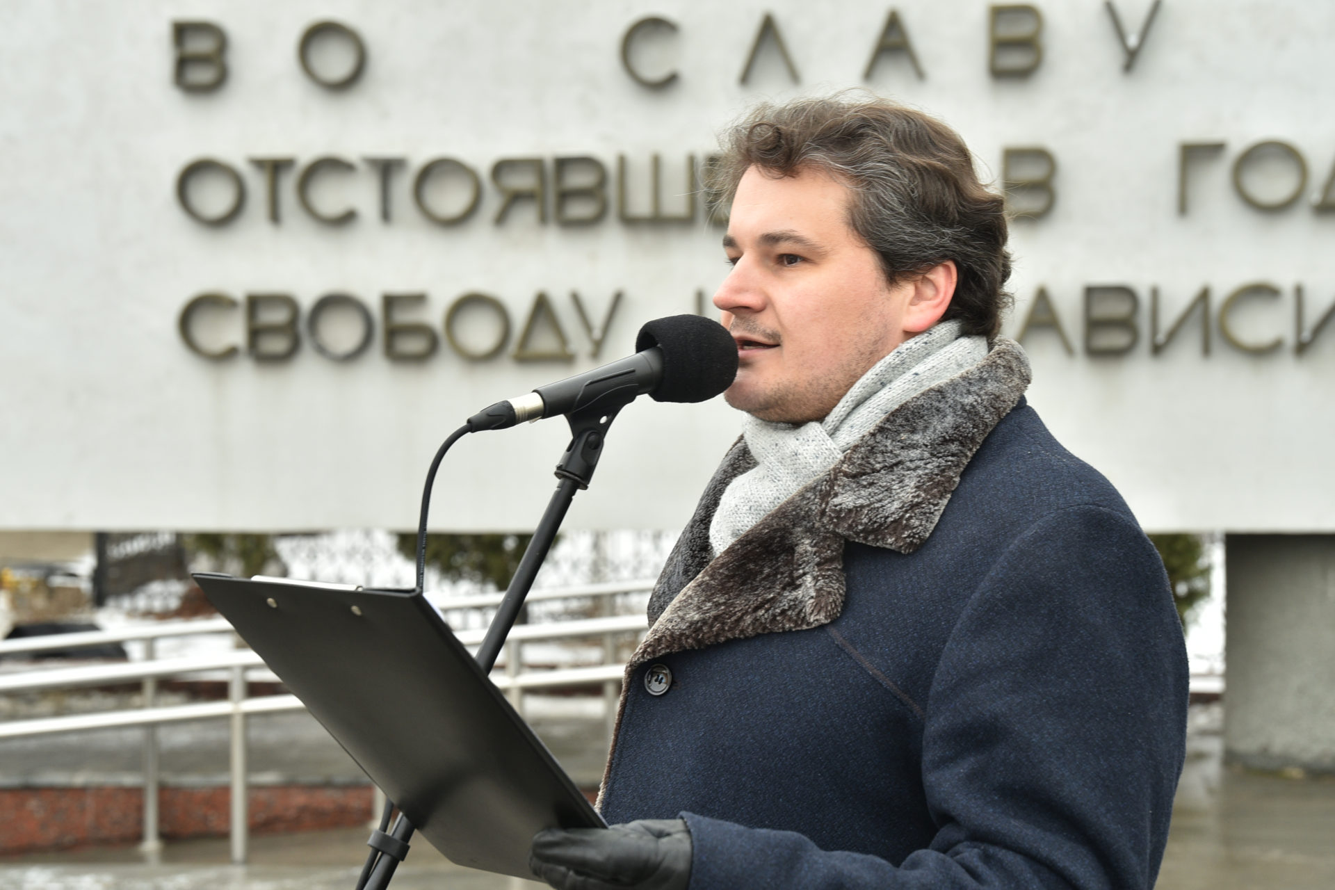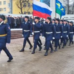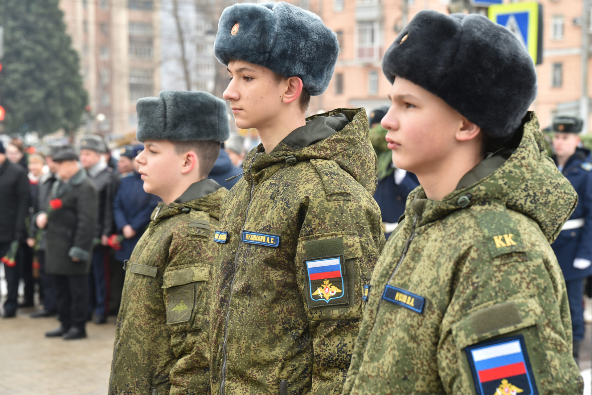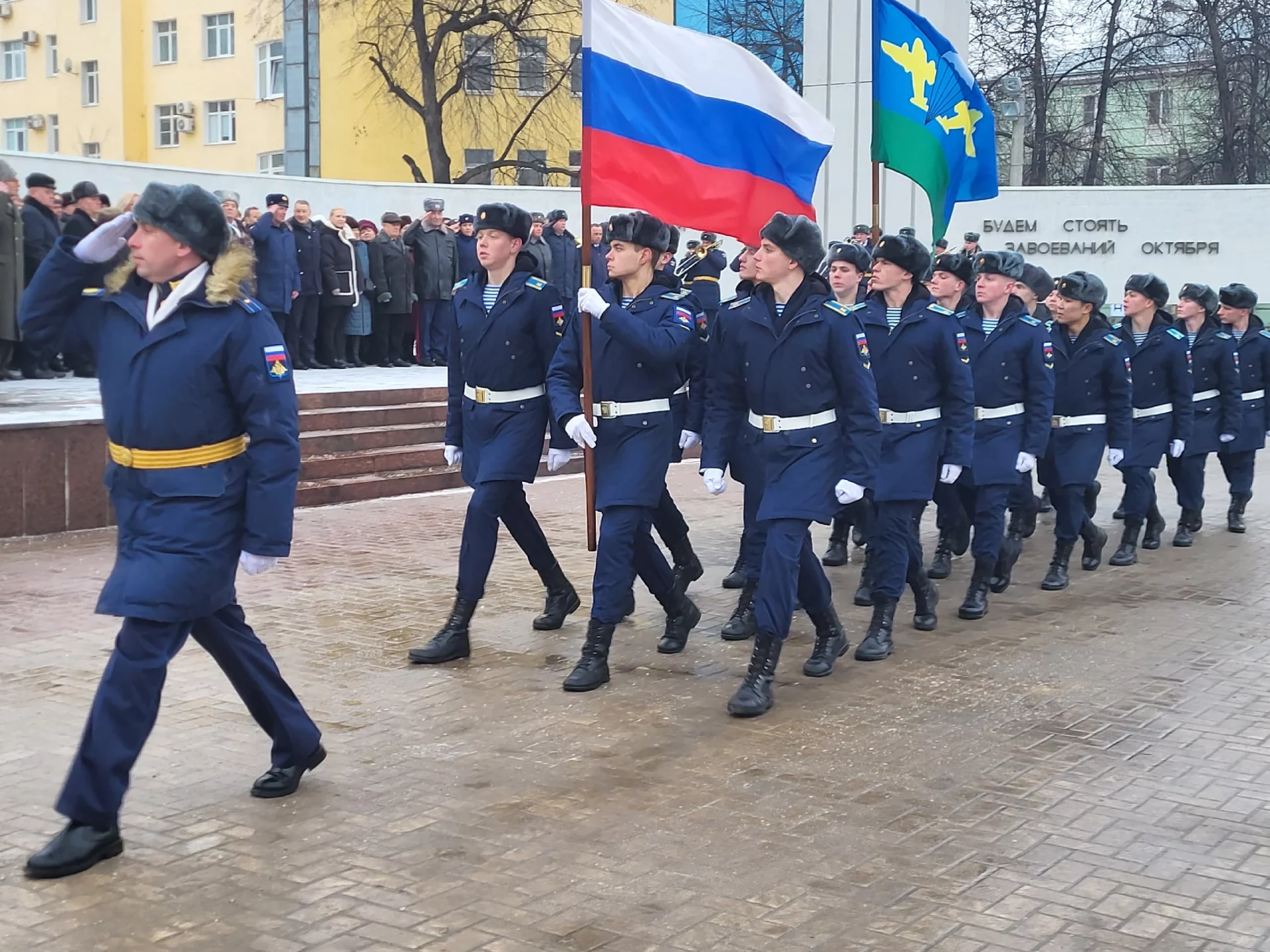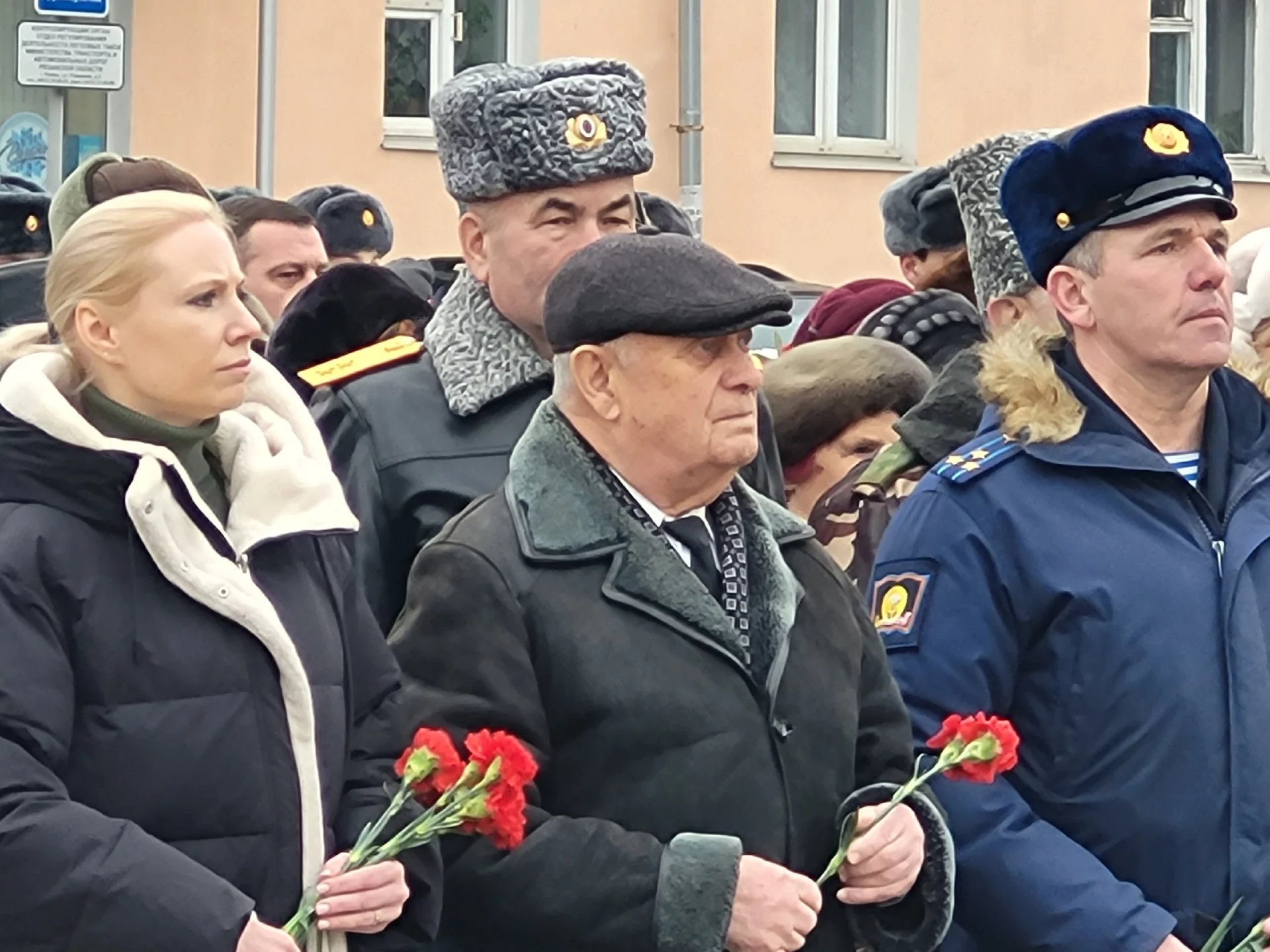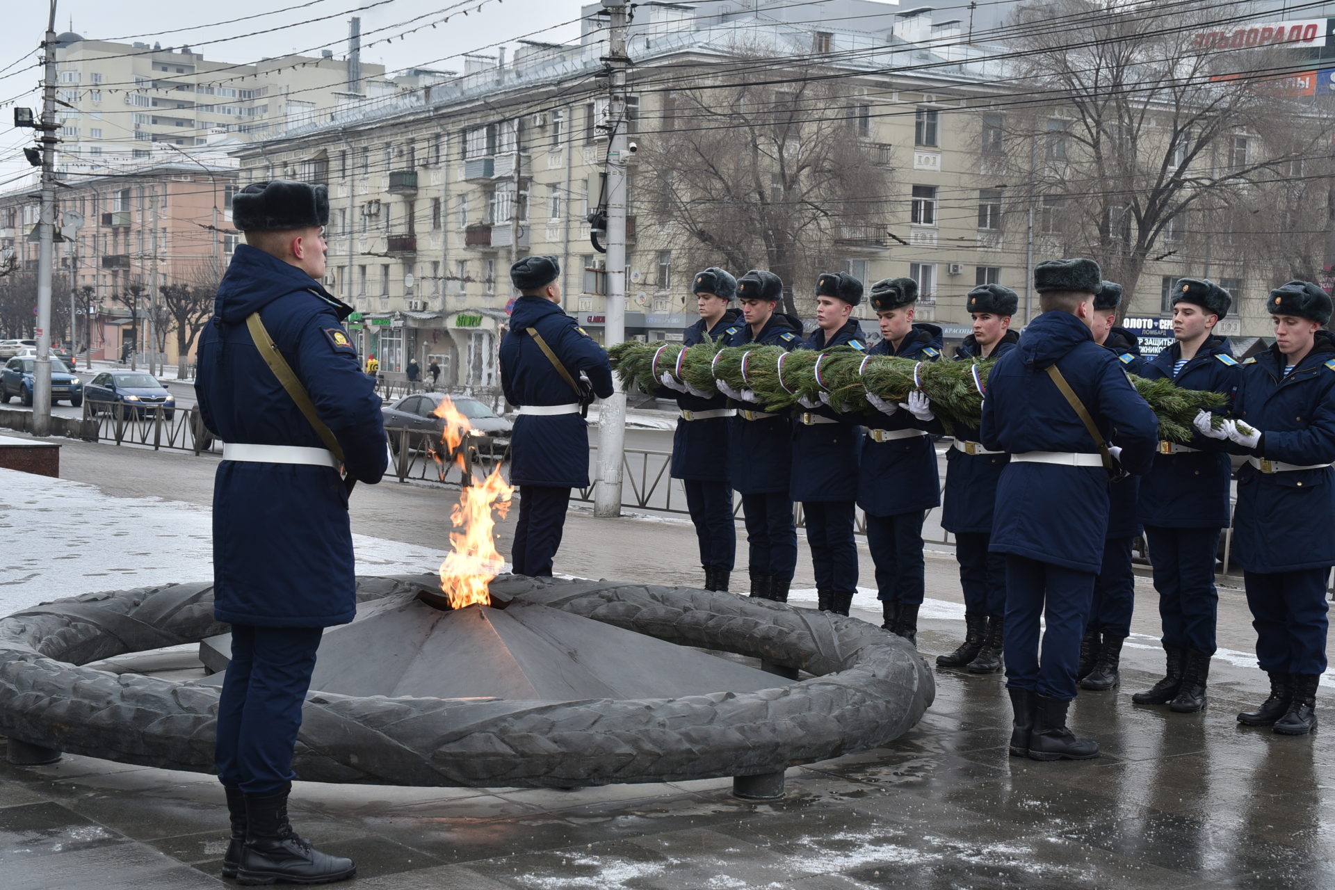 Торжественная церемония началась с минуты молчания. Курсанты Рязанского гвардейского высшего воздушно-десантного командного училища имени генерала армии В.Ф. Маргелова возложили к мемориалу “Монумент победы” гирлянду воинской славы.