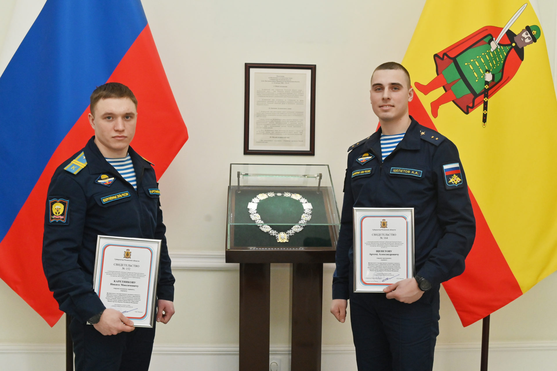 – Сегодня в зале собрались участники специальной военной операции, военнослужащие, кусанты, спасатели, пожарные, представители ветеранских общественных организаций, люди самых разных профессий и сфер деятельности. Каждый проявил себя в чём-то важном для региона. Вы получаете награды за службу, учёбу, работу, за профессионализм, верность долгу и нашей стране. На Рязанской земле всегда рождались герои, защитники Отечества. Они исполняли воинский долг с честью и достоинством. И сейчас наши бойцы тоже выполняют важнейшие государственные задачи в зоне специальной военной операции. Мы гордимся нашими земляками, – говорит губернатор Павел Малков.