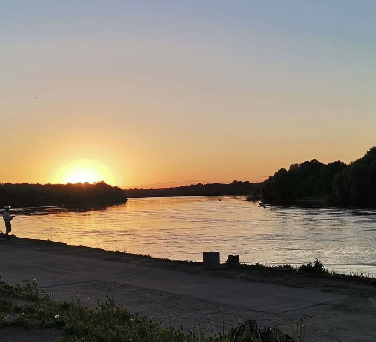 • Антон Тренихин с работой «Закат на Оке» у рязанского лесопарка,