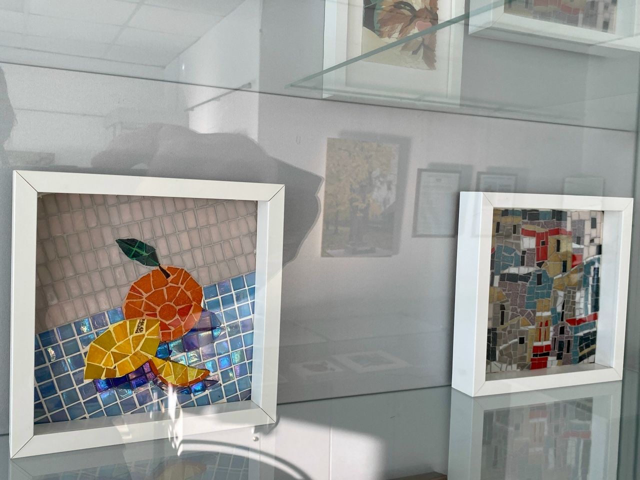 На выставке, подготовленной ОНМЦ, можно увидеть мозаичные полотна, созданные за пять лет работы школы. Их авторы – люди разных профессий: преподаватели английского, стоматологи, бухгалтеры, дизайнеры… Экспозиция словно говорит: мозаика – это искусство, доступное каждому, независимо от опыта, образования или рода занятий.