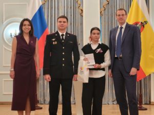 Паспорта школьникам вручали губернатор Павел Малков, начальник управления по вопросам миграции УМВД России по Рязанский области подполковник полиции Максим Горожанов и председатель Совета регионального отделения Движения Первых Татьяна Косачёва.