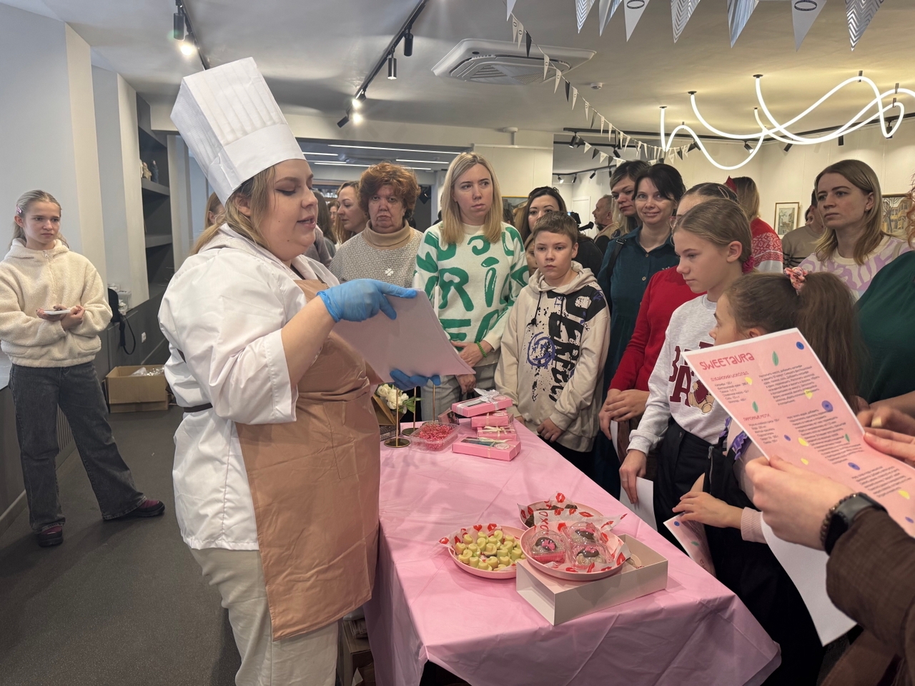 Для них были организованы кулинарные мастер-классы. Профессиональный кондитер Дарья Козлова научила их готовить Дубайский шоколад, шоколатье Екатерина Кондратова показала, как изготовить цветы из шоколада, а Фуд – флорист Анна Титова научила изготовлению цветов из кусочков яблок. Подобные мастер – классы будут проводиться регулярно на различных площадках города.