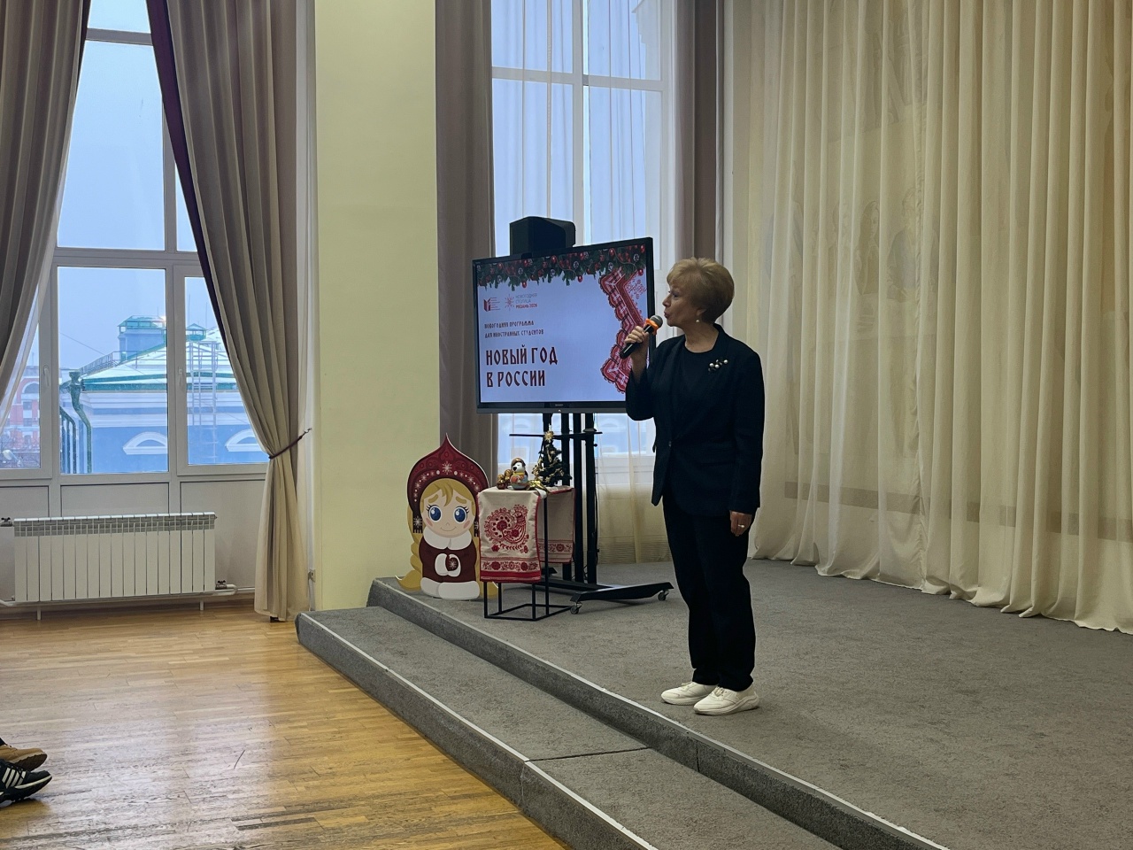 Участники узнали об истории и традициях празднования Нового года в России, познакомились с основными атрибутами и символами праздника: наряженной елкой, Дедом Морозом и Снегурочкой, боем курантов и зимними забавами. Студенты-иностранцы приняли участие в конкурсах и играх, зарядившись духом праздника и русской культуры, и показали заранее подготовленные творческие номера. Молодые люди читали стихи русских поэтов, и зрители поддерживали их бурными аплодисментами.