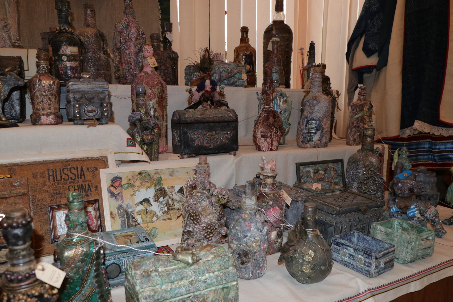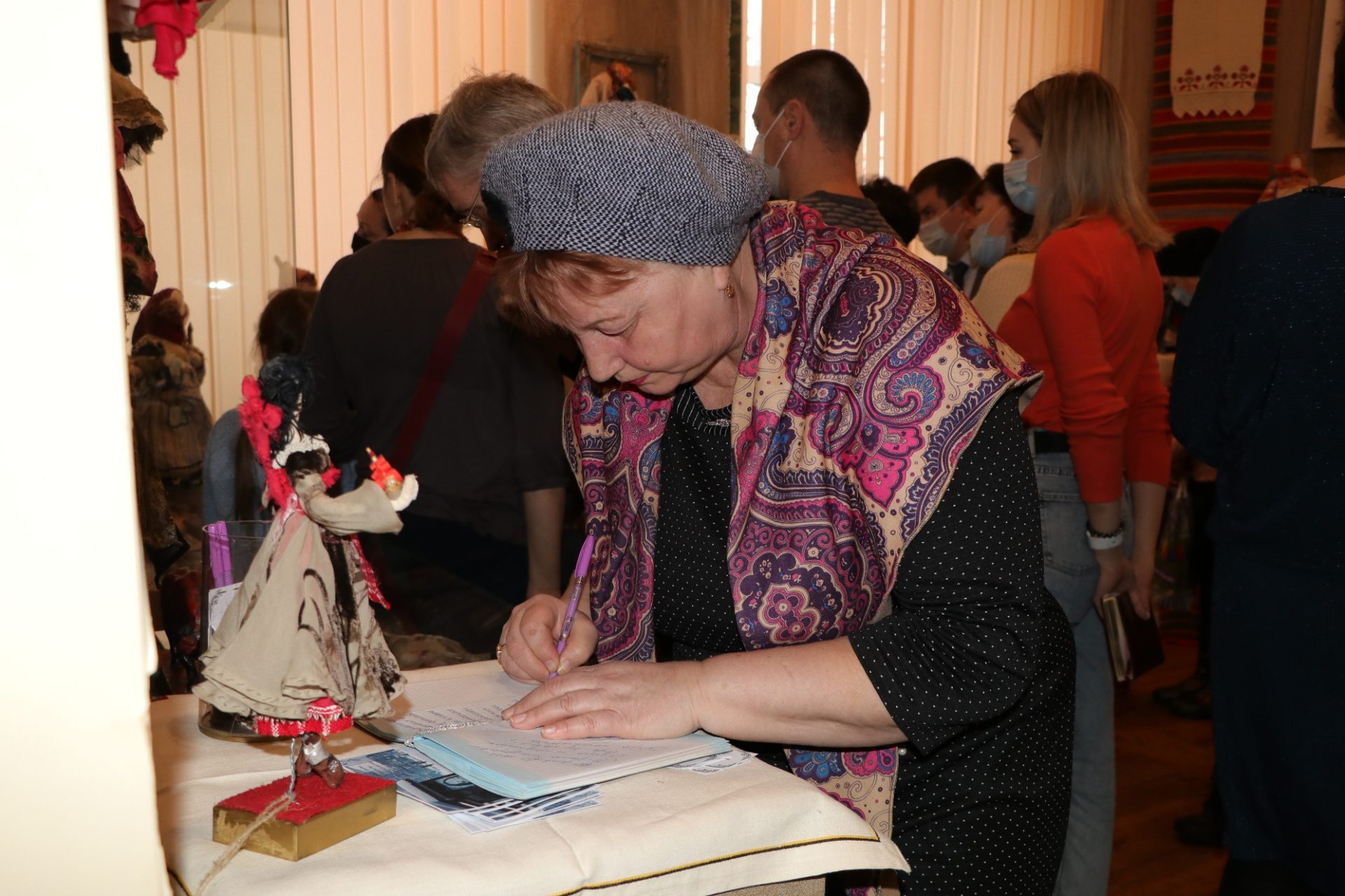 В выставочном зале присутствующие увидели огромное разнообразие экспонатов, сделанных из абсолютно разных материалов руками умелицы. Марина Викторовна подробно рассказала о каждом, поделившись с присутствующими историей и способом их создания. Особое внимание автор выставки уделила этнографическим куклам и народным костюмам, ведь именно с них и началось ее творчество.