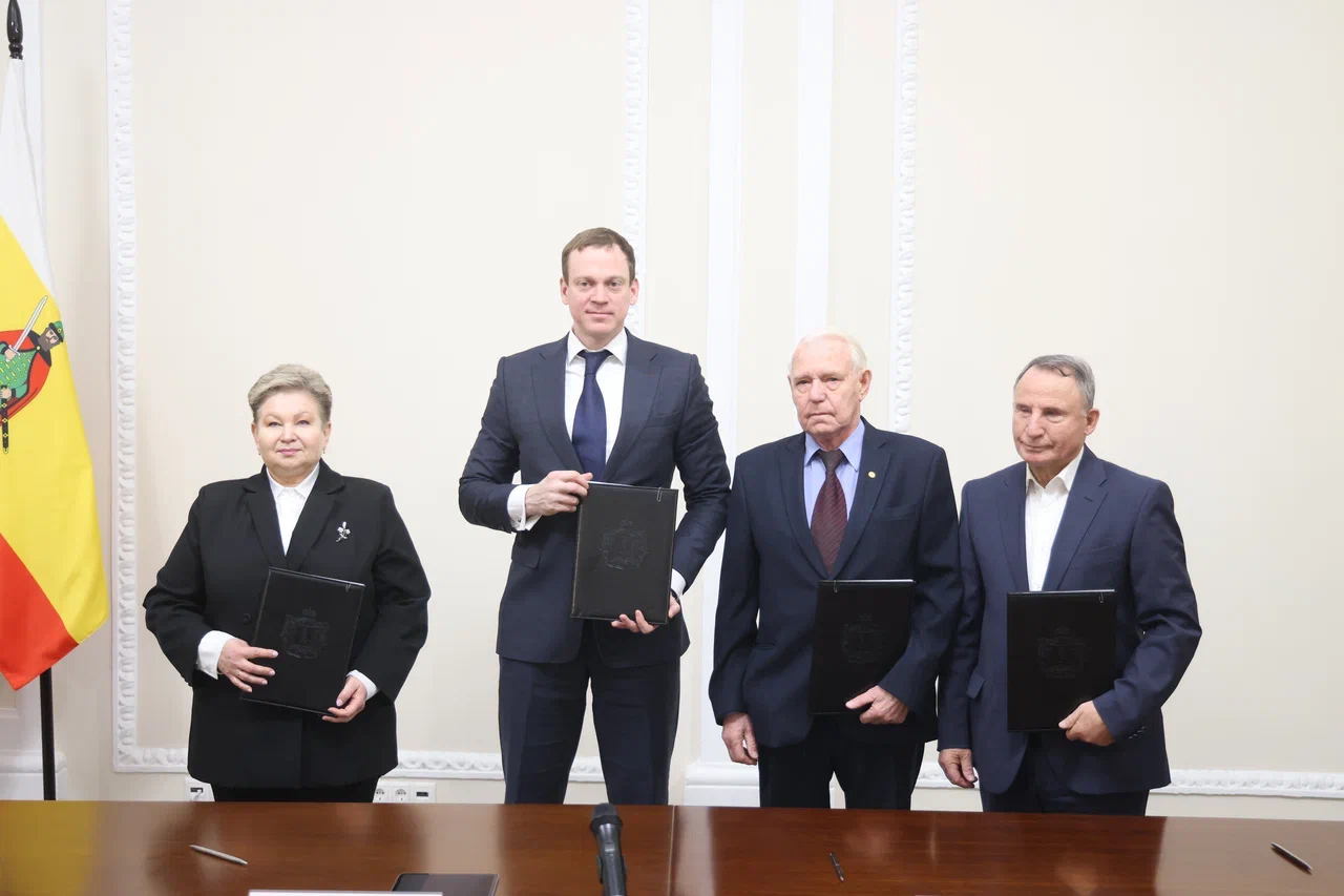 Между правительством Рязанской области, профсоюзами и работодателями региона подписано соглашение на 2025-2027 годы. Подписи на документе поставили губернатор Павел Малков, председатель областного союза организаций профсоюзов Инна Калашникова, председатель правления Рязанской Ассоциации экономического сотрудничества предприятий Владимир Кутенцын и председатель правления регионального объединения работодателей «Агропромышленный союз» Георгий Свид.