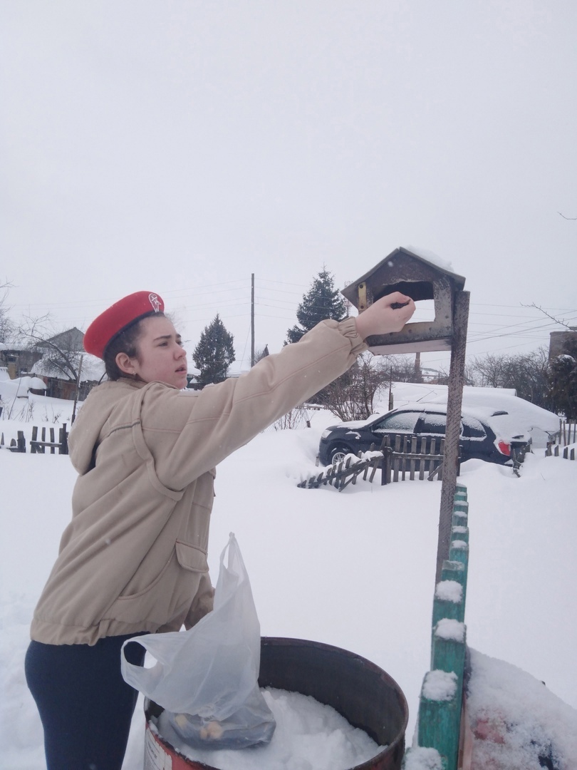 Юнармейцы развешивают их в парках, скверах, возле своих домов. В селе Грязное кормушки появились и в школьном дендрарии. А учителя биологии научили ребят вести дневники наблюдений, отслеживать, какие птички больше всего прилетают клевать корм. Первые впечатления – среди прилетающих птичек много синичек, воробьев, а в последнее время прилетают и красногрудые снегири.