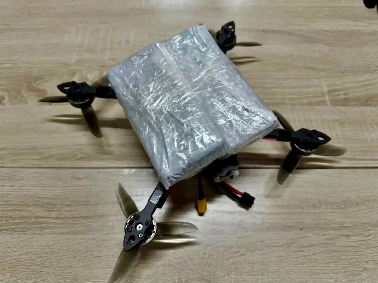 Сотрудники ИК-5 заметили беспилотный летательный аппарат над территорией режимной зоны. При снижении коптер им удалось перехватить. При осмотре был обнаружен прикрепленный к летательному аппарату сверток, в котором находились запрещённые предметы. Были изъяты четыре сотовых телефона и три USB-кабеля. Средства связи предназначались для осужденных.