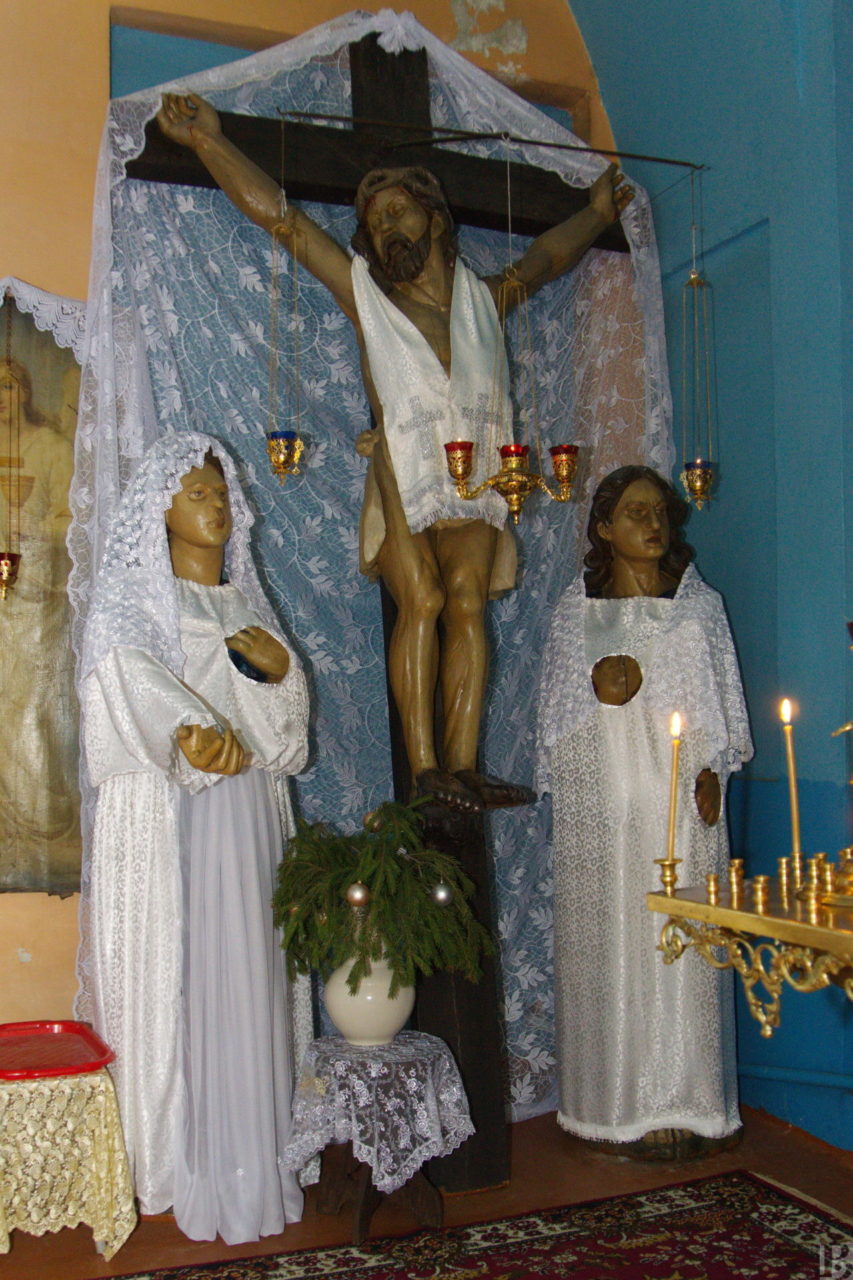 В село часто приезжают паломники поклониться главной святыни храма – древнему деревянному Распятию Христа Спасителя с предстоящими Божьей Матерью и апостолом Иоанном Богословом.