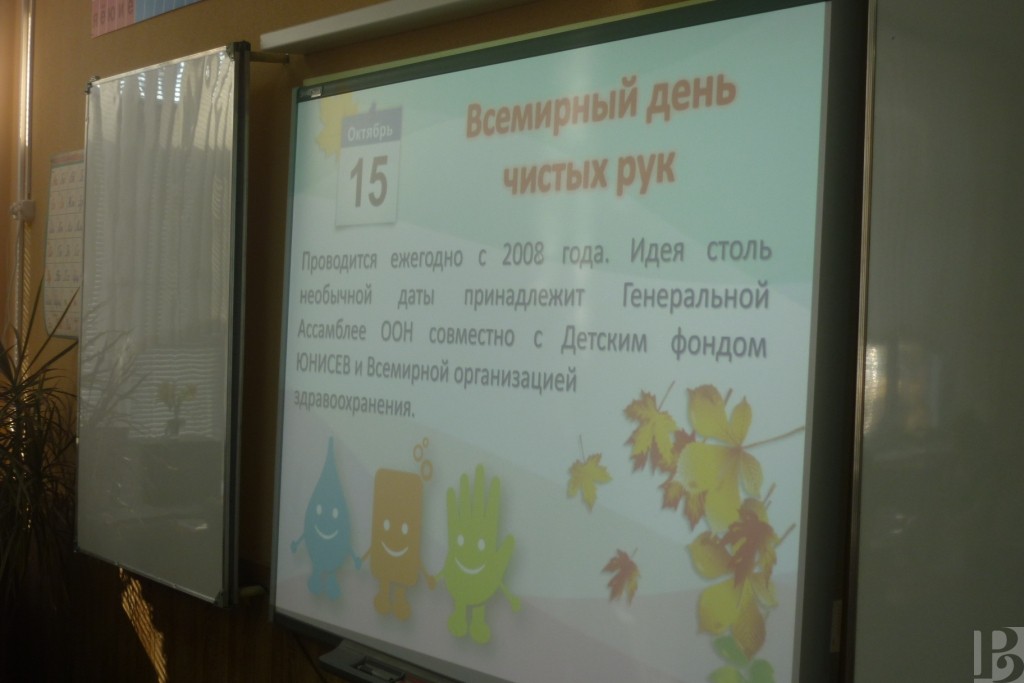 Особый урок прошел для четвертого класса школы №53. Дети узнали, как правильно мыть руки и что будет, если этого не делать. Красочная презентация на интерактивной доске в доступной форме рассказала о том, сколько бактерий и вирусов можно «зачерпнуть» рукой, не только потрогав перила в подъезде, но и в собственном доме, погладив кошку. Мыть руки тоже нужно уметь. Даже из взрослых мало кто знает, что перед этим надо снять с рук часы и все украшения, а затем, тщательно намылив кисти, вспенив мыло, кропотливо мыть руки и обязательно запястья. В этом случае с кожи рук смываются загрязнения, которые служат питательной средой для микроорганизмов. После этого любые простейшие, осевшие на чистые руки, самостоятельно погибают через 10 минут. Всем тем, кто усвоил урок, теперь болезни грязных рук не угрожают, но проблема эта стоит остро. В мире по-прежнему ежедневно день из-за немытых рук умирает 5000 детей.