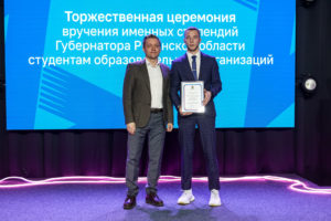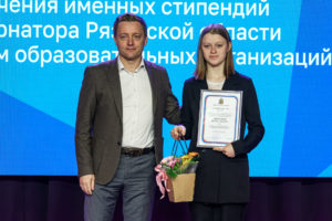Именной стипендии губернатора удостоились 56 студентов образовательных организаций Рязанской области за активное участие в научной и общественной жизни и за высокие академические успехи. Первый заместитель председателя правительства Рязанской области Денис Боков поздравил ребят и вручил им свидетельства о назначении именной стипендии: «В Рязанской области очень много талантливых, активных, умных молодых людей, и вы находитесь в их авангарде. Спасибо вам большое за то, что вы именно такие. И хотя мы прекрасно осознаем, что вы поддерживаетесь на уровне своих учебных заведений, для правительства очень важно со своей стороны тоже выразить вам поддержку».