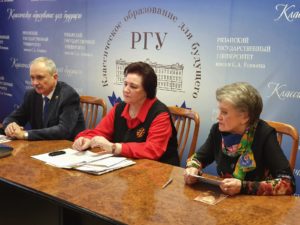 С приветственным словом к участникам круглого стола обратились проректор РГУ Оксана Исаева, заместитель министра по делам территорий и информационной политике Иван Ушаков, начальник отдела министерства образования и молодежной политики Виталий Косачев.