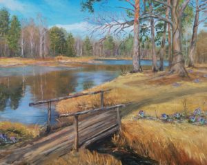 «Я начала писать картины около десяти лет назад, – рассказала Наталья Тимохина. – Взять в руки кисти меня заставила красота Мещёрского края, величавость его сосновых лесов, прозрачная глубина таинственных озер».
