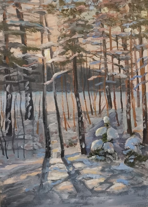 «Я начала писать картины около десяти лет назад, – рассказала Наталья Тимохина. – Взять в руки кисти меня заставила красота Мещёрского края, величавость его сосновых лесов, прозрачная глубина таинственных озер».