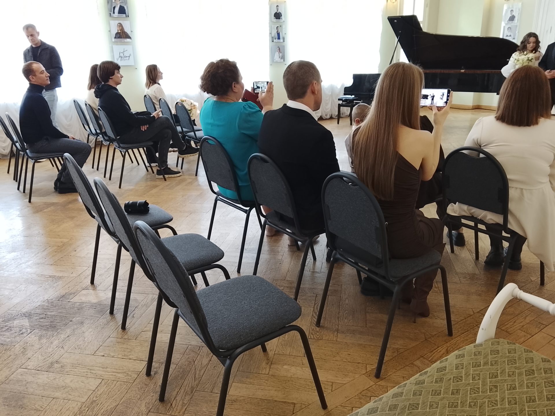 В фойе музыкального театра прошла торжественная церемония регистрации брака. Свой союз скрепили Дмитрий и Дарья. Кольца им поднес их трехлетний сын. Дмитрий ветеран боевых действий Специальной военной операции. Молодоженов поздравила