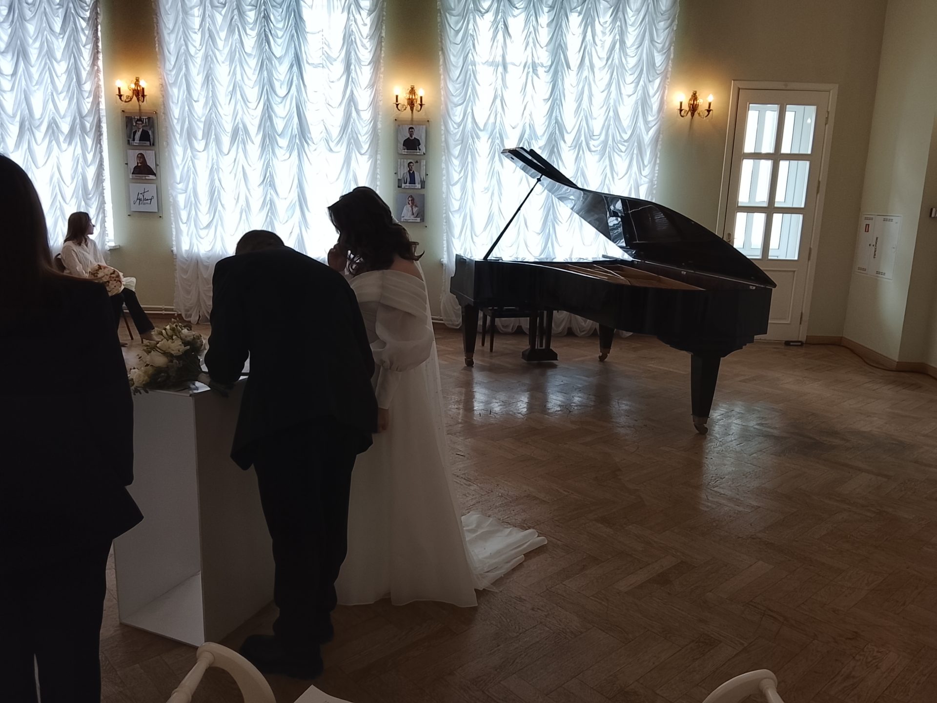 Коллектив Музыкального театра подарил молодоженам билеты на спектакль. Проведение церемонии бракосочетания в стенах учреждения культуры стало возможным как часть проекта «Новые места для счастья».