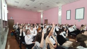 Министр ответила на вопросы учащихся, поделилась с ними опытом работы учителем, рассказала истории из учительских будней: «Учитель одна из самых востребованных и сложных профессий. Основы личности каждого ребенка закладываются в семье, но коррекция ведётся именно специалистами сферы образования».