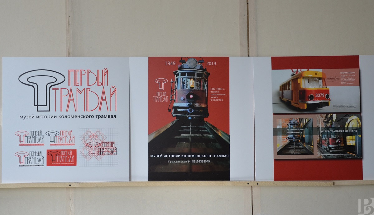 Две работы были посвящены Коломне (в училище немало студентов из этого подмосковного города) – фирменный стиль турбюро «Коломенская верста» и музея истории трамвая «Первый трамвай».