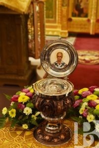 В завершение богослужения прошла церемония выноса ковчега и поклонения мощам, которые теперь будут находиться в селе Нармушадь на постоянной основе.