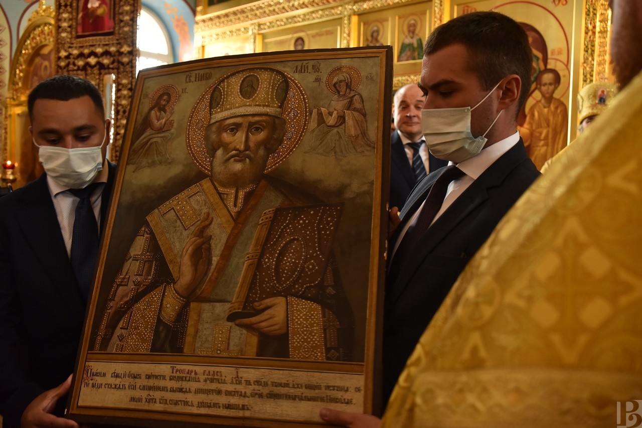Игорь Греков передал в храм икону Николая Чудотворца 19 века.