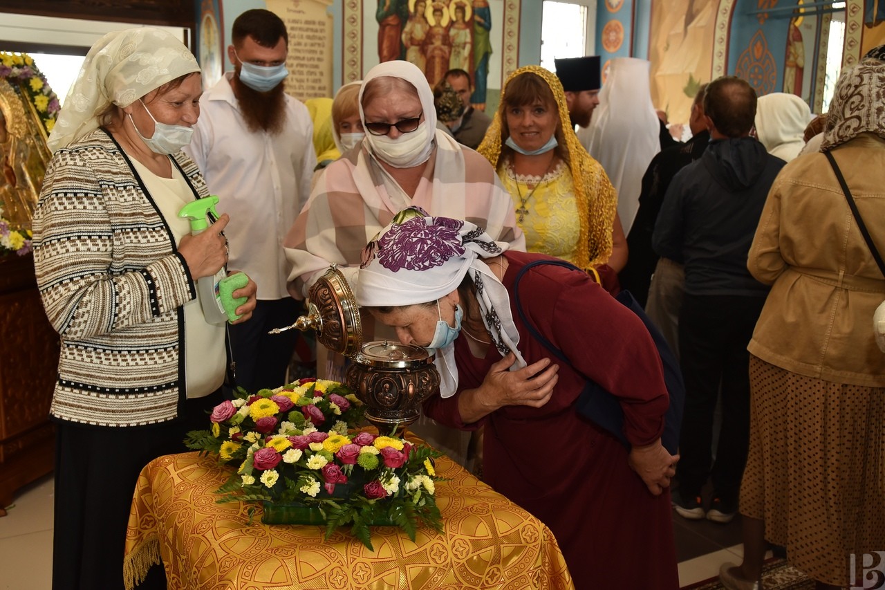 В завершение богослужения прошла церемония выноса ковчега и поклонения мощам, которые теперь будут находиться в селе Нармушадь на постоянной основе.