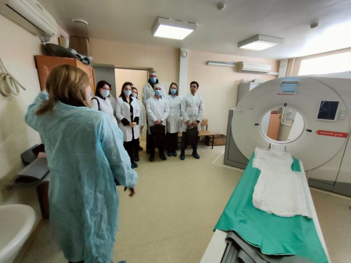 Гостей встретила главный врач медучреждения Юлия Колчева. Она показала один из недавно построенных ФАПов в районе и рассказала об особенностях его работы. Затем студенты посетили главное здание больницы, где их провели в хирургическое, реанимационное, гинекологическое отделения, отделение рентгенографии и томографии, показали современное оборудование больницы.