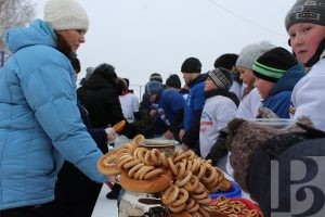 А затем начались «Зимние забавы». Все состязания были также по-праздничному веселые и добрые: «Кто быстрее нарядит елку», «Змейка» с клюшкой и шайбой, эстафета «Шапочка и шарфик», метание снежков, «Паровозик», катание друг друга на лопатах и шорт-трек. Несмотря на ощутимый морозец, мерзнуть на празднике было просто некогда. Кроме того, силы и спортсмены, и зрители поддерживали горячим чаем с пирожками, сушками и бубликами.