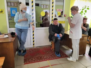 Условно пострадавшие прибыли на автобусе к зданию, прошли регистрацию, написали заявление на получение материальных выплат и разместились по комнатам.