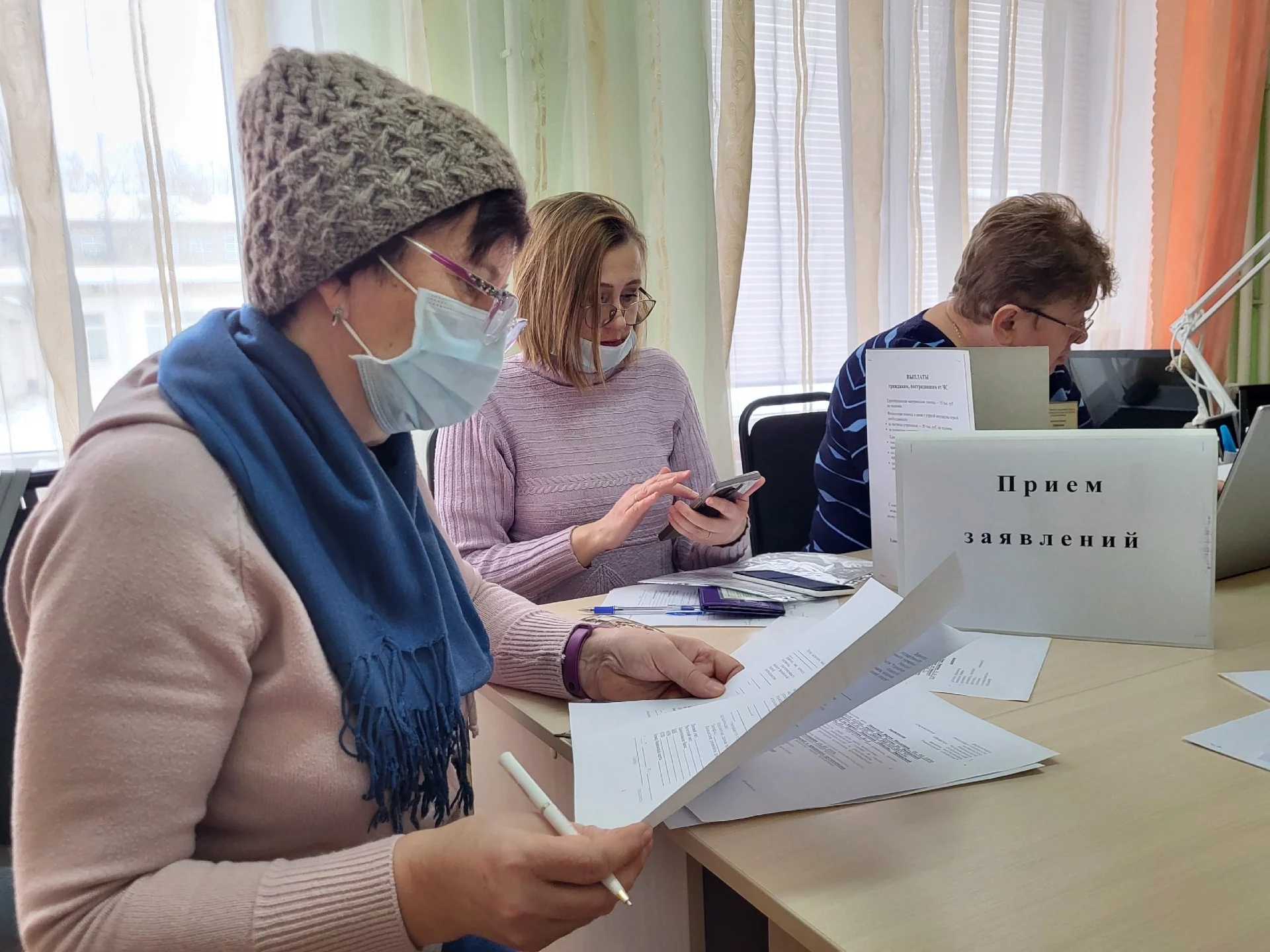 Условно пострадавшие прибыли на автобусе к зданию, прошли регистрацию, написали заявление на получение материальных выплат и разместились по комнатам.