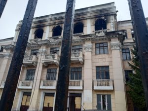 Продолжается борьба с последствиями пожара в историческом здании бывшего училища связи. Сотрудники МЧС проливают этажи, чтобы ликвидировать остаточное тление в помещениях. Параллельно эксперты ведомства выясняют причину вчерашнего возгорания.